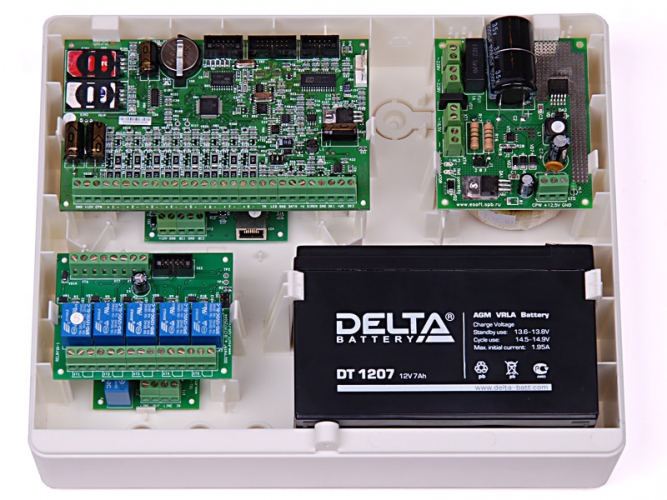 Специализированный пластиковый корпус для объектового оборудования компании "Ритм" под АКБ 7Ач Размер: 295х250х77 мм.