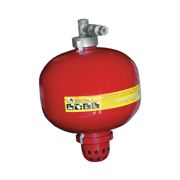 Срабатывание модуля осуществляется следующим образом: при подаче импульса тока на активатор происходит запуск газогенерирующего элемента с интенсивным газовыделением, что приводит к нарастанию давления внутри корпуса модуля, разрушению мембраны и выбросу огнетушащего порошка в зону горения.